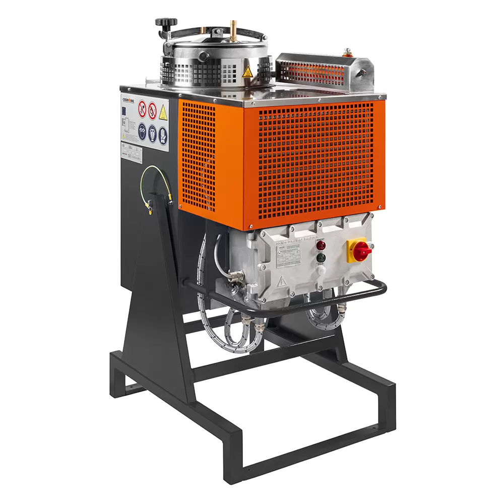 Ciemme Smart Range (Photopolymer Sector) — ручной регенератор растворителей для небольших объёмов отработанной химии в производстве фотополимеров: простая настройка времени и температуры, опциональные дистилляционные пакеты для лёгкой очистки и модели K2/K16/K30/K60 (10–67 л, до 20–134 л/день, версии Non-ATEX и ATEX II 2G Zone 1).