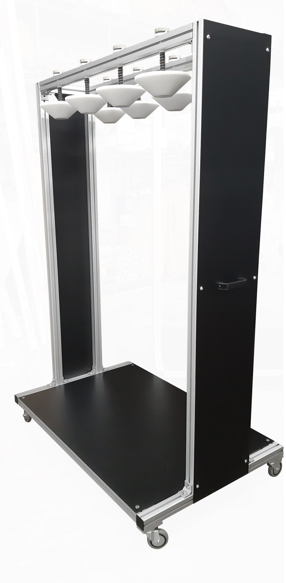 Компактная тележка для хранения и безопасной транспортировки анилоксов и рукавов. Прочная конструкция на мобильных колёсах позволяет быстро доставлять оснастку к печатным машинам.